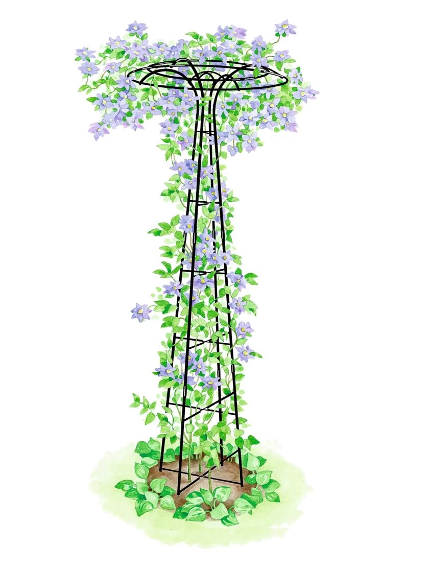 Clematis, morning glories and other vines grow up and over the umbrella-shaped top of this sturdy trellis, and then drape gracefully for a stunning display. The trellis’s clean lines and unique shape let plants take center stage. We recommend securing with Extra-Tall Earth Staples, sold separately.