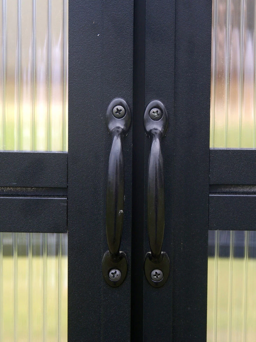 The Monticello Door Kit is designed to allow Monticello Greenhouse Owners to add an additional dual hinged door to the rear end of the their greenhouse. The doors are the same high quality doors that are used in the original Monticello Greenhouse.