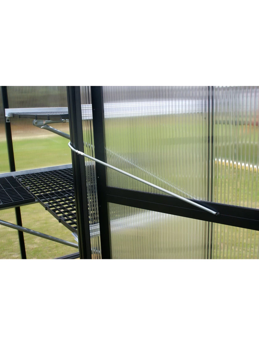 The Growers Edition comes standard with our commercial electric exhaust fan system with built-in louvers and commercial thermostat, to help control the temperature inside your MONT Greenhouse. Other features include a folding workbench system, a drip irrigation system (customized up to 48 dripper heads) with programmable timer, a 17,000 BTU commercial heater with built-in thermostat, and dual automatic roof vent openers.Â