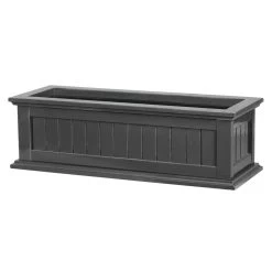 The Nantucket Standard Window Box looks sweet and charming on any windowsill or functions beautifully as a free-standing planter. It features slat-style panels on all sides. Plastic footpads prevent moisture absorption when the planter rests on your patio or deck. Mounting brackets and liner not included. Arrives fully assembled.
