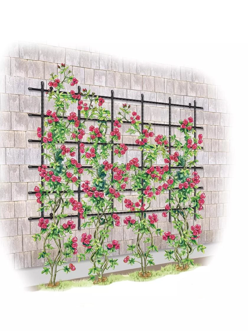 Transform a blank wall with flowering vines or espalier fruit trees. Easy to install and unassuming, this trellis will let your plantings take center stage. Mounting brackets and hardware included. Expandable with additional poles and brackets, sold separately.